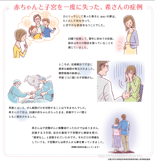 「赤ちゃんと子宮を一度に失った、希さんの症例」という、実際の症例を基に、大阪大学医学部産婦人科の先生が描いた漫画です。